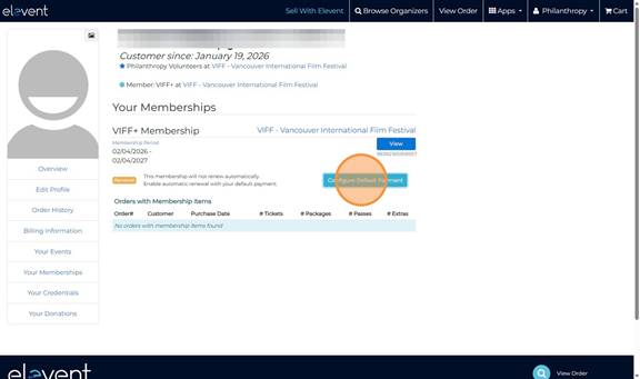 On that page, click "Configure Default Payment" to start setting up auto-renew.
